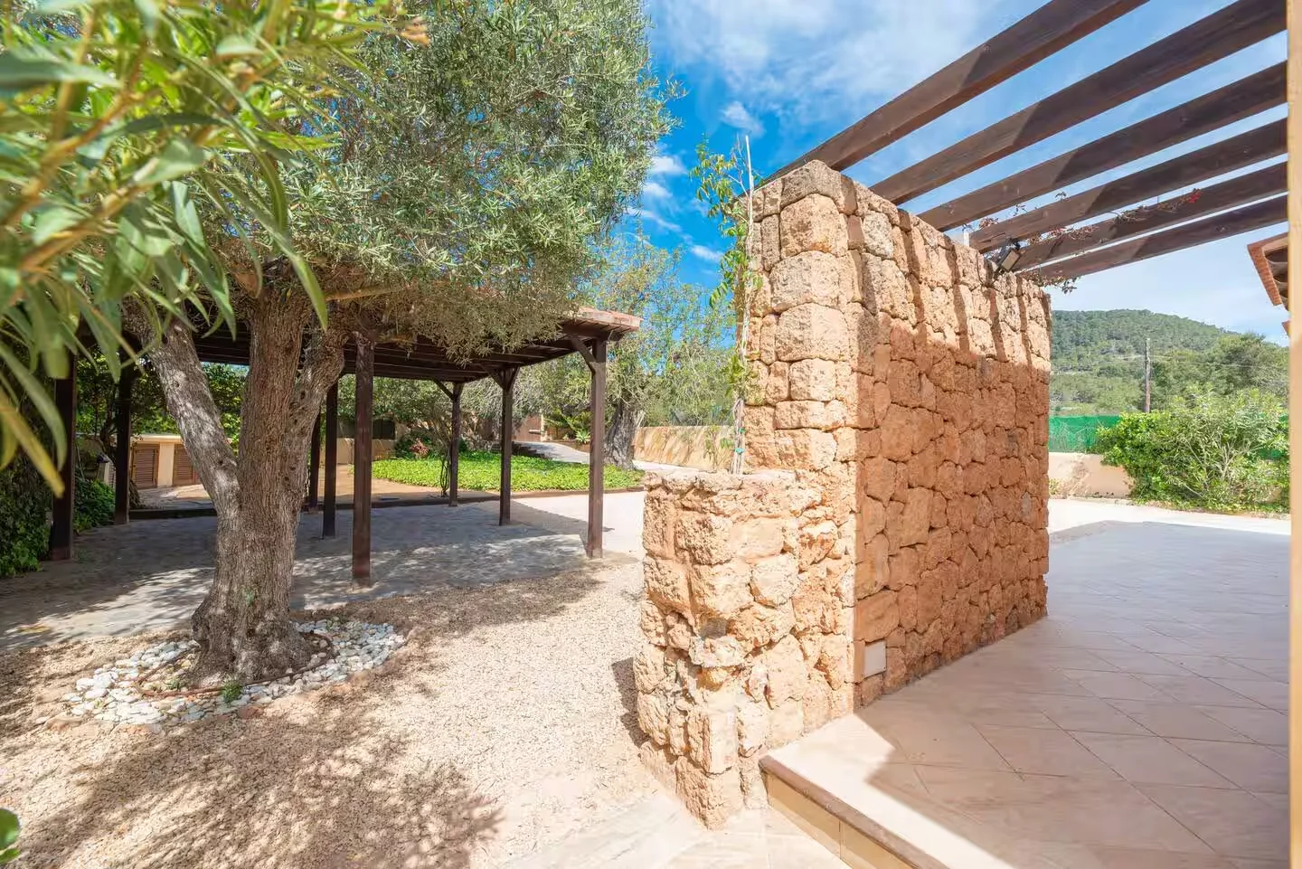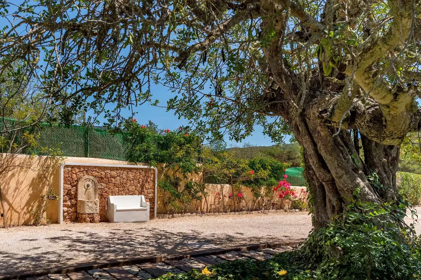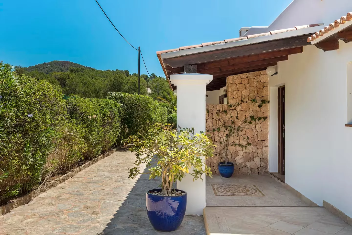 Can Paz se encuentra en el km 7 de la carretera de Sant Josep de sa Talaia, en una zona tranquila y bien comunicada. La villa dispone de 3 dormitorios y 3 baños, uno de ellos en suite con salida privada al jardín. Todas las habitaciones cuentan con camas de 180 cm convertibles en dos de 90 cm. Rodeada por un terreno privado de 2.000 m² con palmeras y vegetación autóctona. A 6,7 km del aeropuerto y 13 km de Dalt Vila.