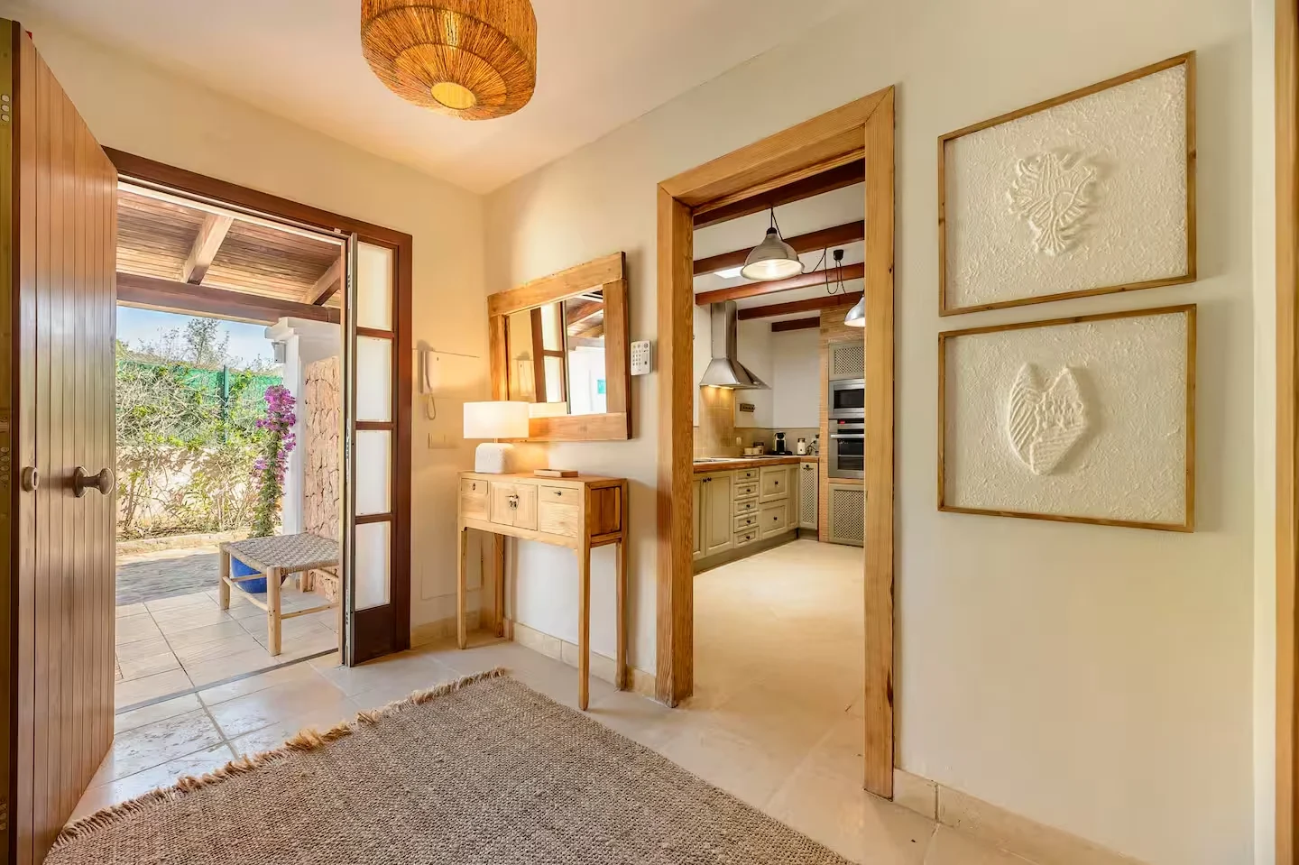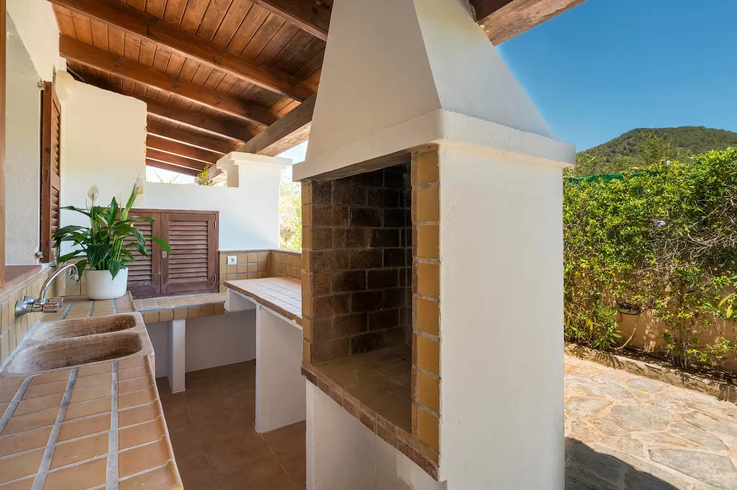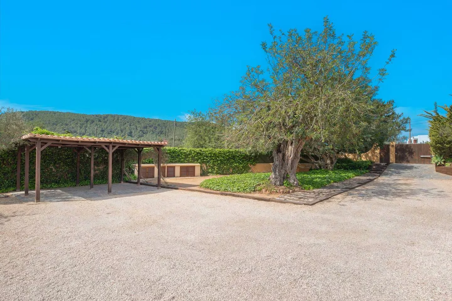 Can Paz se encuentra en el km 7 de la carretera de Sant Josep de sa Talaia, en una zona tranquila y bien comunicada. La villa dispone de 3 dormitorios y 3 baños, uno de ellos en suite con salida privada al jardín. Todas las habitaciones cuentan con camas de 180 cm convertibles en dos de 90 cm. Rodeada por un terreno privado de 2.000 m² con palmeras y vegetación autóctona. A 6,7 km del aeropuerto y 13 km de Dalt Vila.